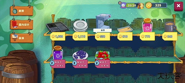 3、这里厨具升级费用比较高,先去煎饼那里攒钱,把级别升了。