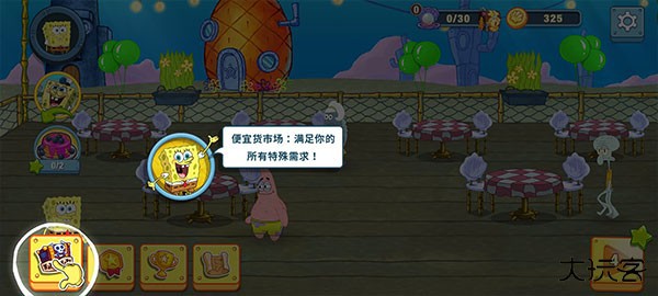 2、点击菠萝屋,开始经营海绵宝宝的煎饼餐厅。