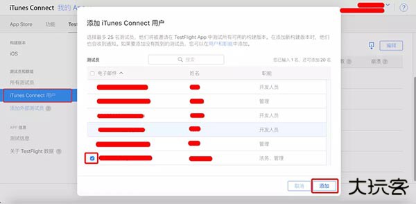 第1步:在 iTunes Connect用户添加测试员