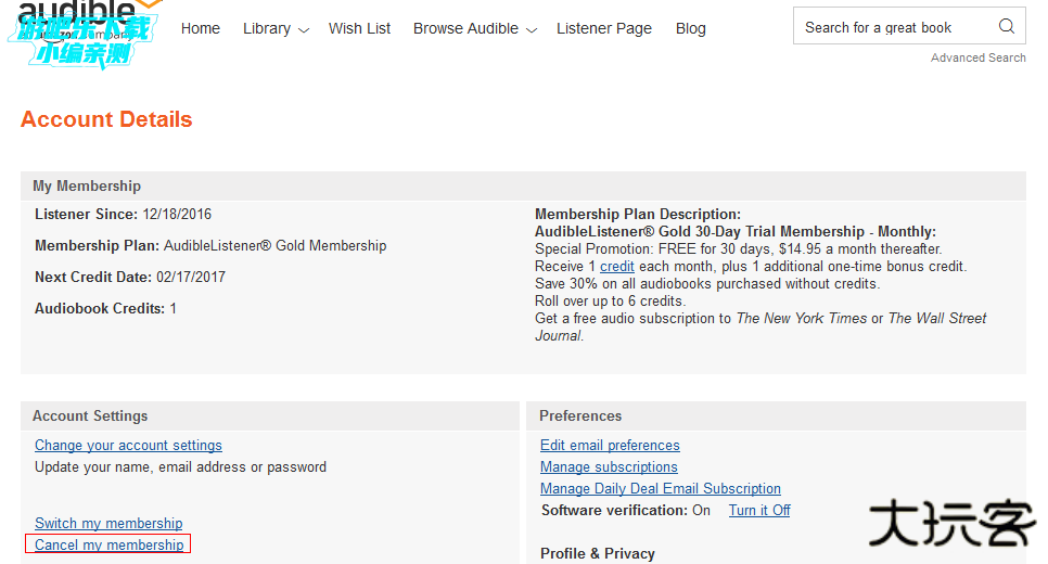 (1)首先登录Download Audiobooks with Audible.com,我的账户里取消membership