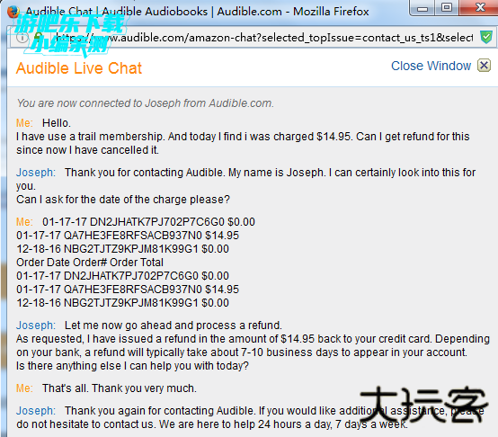 (2)然后登录Contact Customer Service | Audible.com,My account, return or refund, Membership history,确认信息。确认后返回。点击Chat 选择在线客服。交流退款。