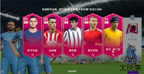 荣耀值达到60解锁球探功能后,首次引导教程抽卡必出一位随机红卡球员。