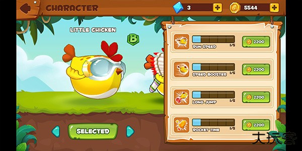 1、进入关卡内后屏幕右侧即可让小鸡跳跃,二段跳通关第一章节第3关即可解锁,加速跑则是第一章节第2关