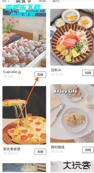 2、打开【美食】标签栏,选择拍照效果,点击【拍摄】。