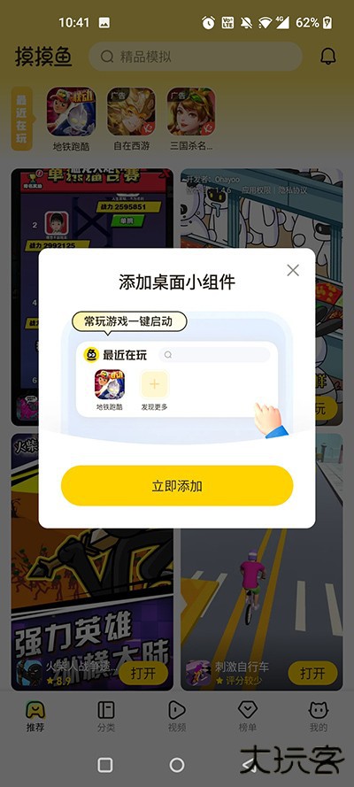 5、然后会推荐你添加桌面小组件,里面会显示游戏在桌面,我们选择立即添加到桌面。