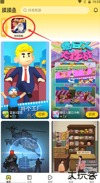 1、首先首次下载安装好摸摸鱼最新版本,然后进入到主页面选择自己想要游玩的游戏。