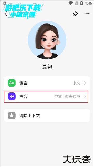 5、可对豆包进行设置,如中文、温柔桃子声音