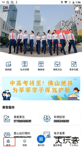 1、打开在本站下载的软件,点击进入首页,它为用户提供了线网图、站点详情、行程列表、支付管理、电子发票等等功能;