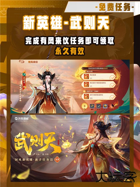 每天排位或匹配,预计3-4天即可获得武则天角色~