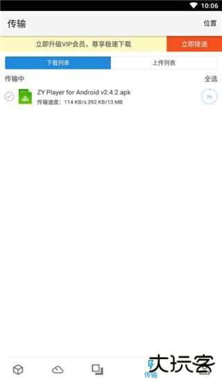 6、点击下载按钮后,就会在软件下方第四个图标传输界面开始下载,如下图: