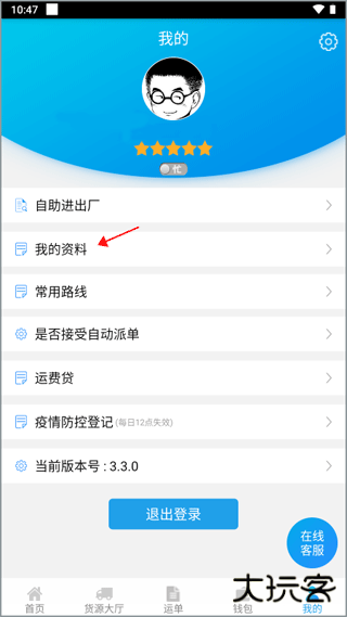 1、登录软件账号之后,切换到“我的”界面,点击页面中的“我的资料”。