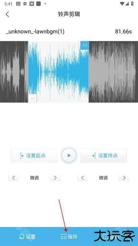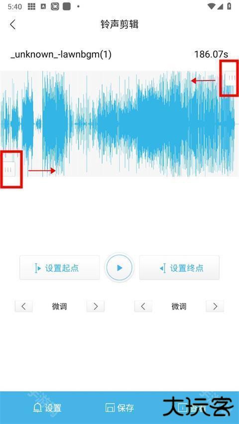 5、进入剪辑界面,拖动前后进度条可进行调整,选取你想要的铃声片段;