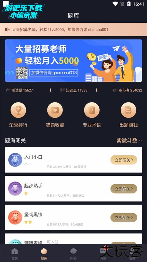 2、点击选择题库板块,在这里开始你的入门学习;