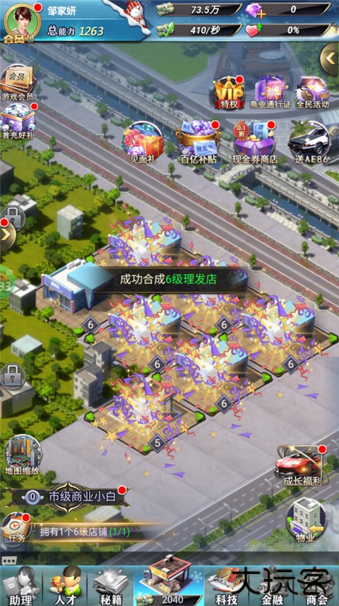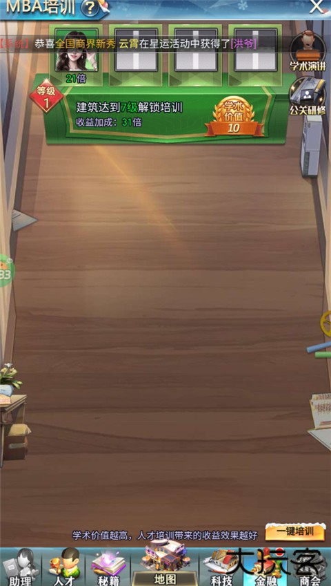 3、排行榜、背包、消息互动、成就、员工、世界商圈等,多种玩法多种挑战。