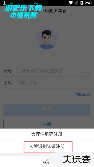 3、点击【注册】,选择【人脸识别认证注册】方式
