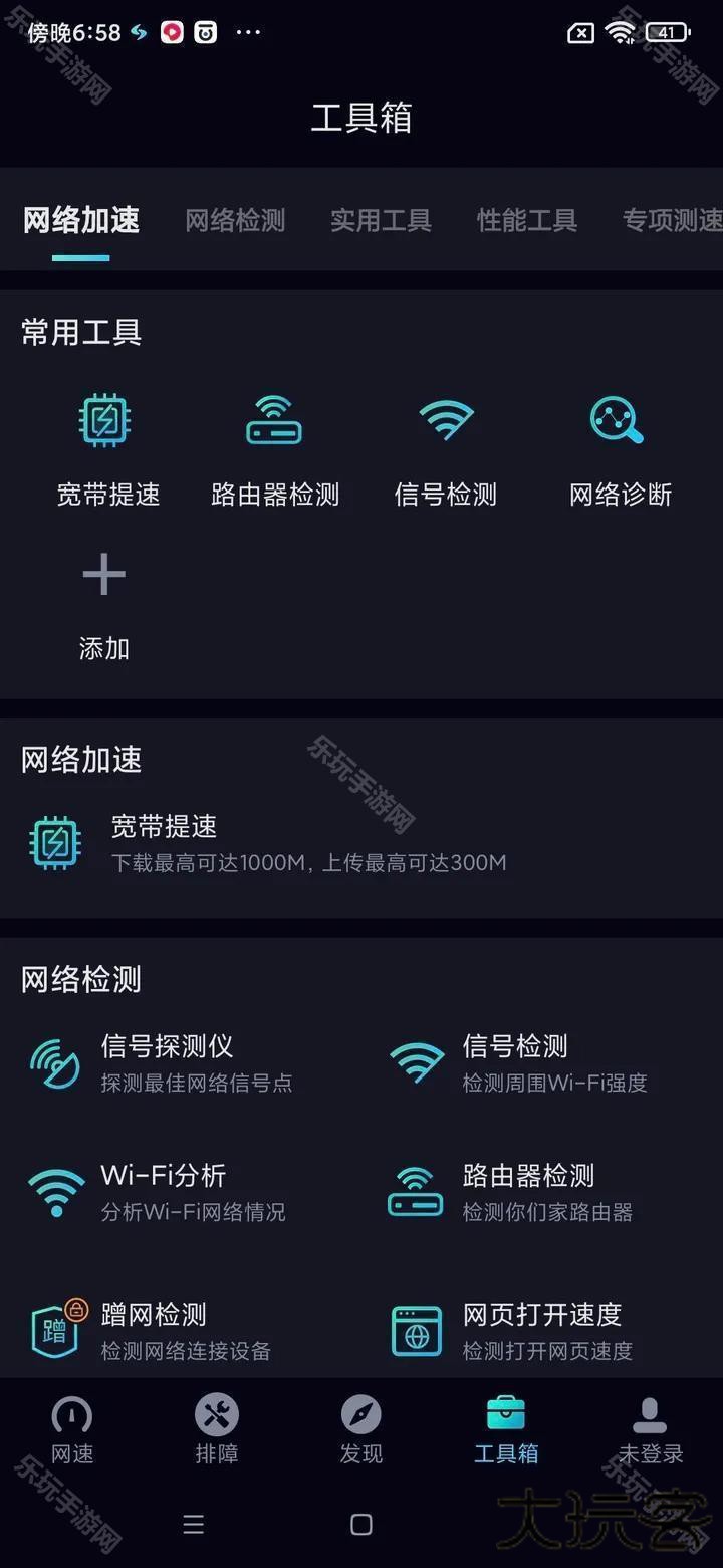2、在工具箱网络加速这一板块中可以进行宽带提速,下载最高可达1000M,上传最高可达3000M