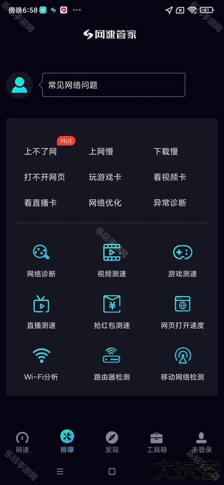 1、在网速管家中,点击排障,有什么不明白的在此几乎都可以帮你解答疑惑