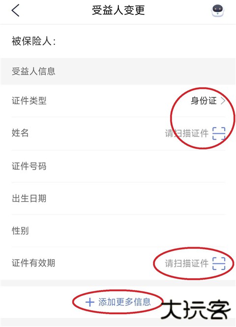 6、填写新的受益人信息,然后点击【添加更多信息】。