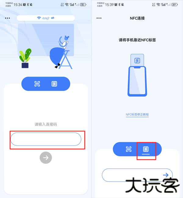 5、除了扫描二维码方式连接外,用户还可以直接输入链接码或者用nfc连接方式进行连接