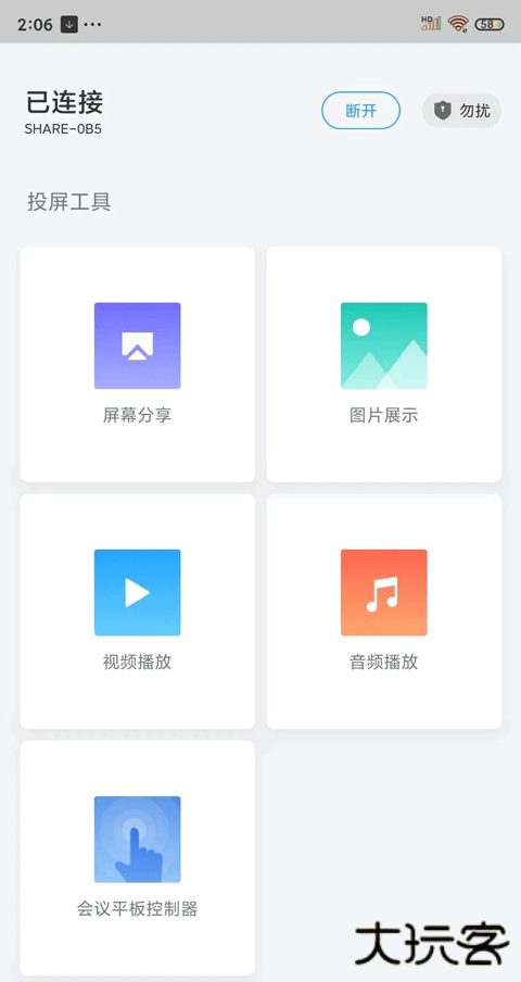 4、连接成功后点击屏幕共享即可开始投屏