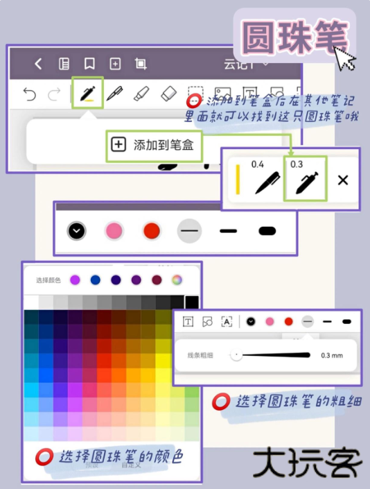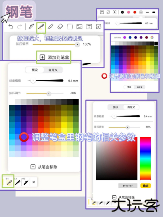 1、如何调整圆珠笔、钢笔、荧光笔的参数