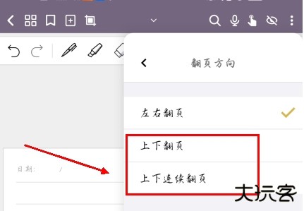 2、然后按自己的需求选【上下翻页】或者【上下连续翻页】就OK啦~