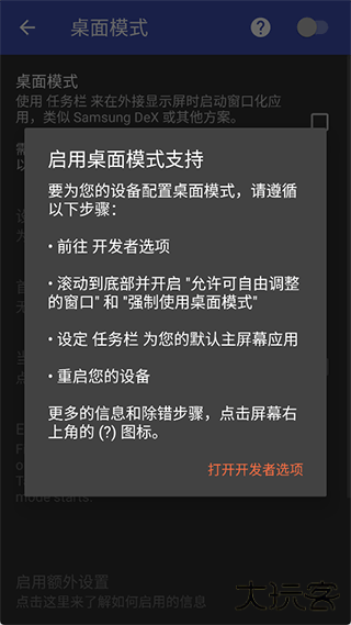 桌面模式需要 USB 转 HDMI 适配器(或笔记本电脑)和支持视频输出的兼容设备。此外,某些设置需要通过 adb 授予特殊权限。