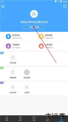 2、点击开启自动安装,在下载安装应用游戏是就可以一键直接安装。
