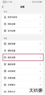 3、在设置中找到【聊天设置】。