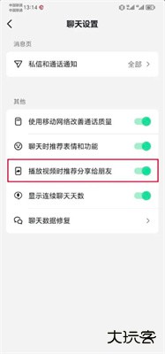 4、最后将【播放视频时推荐分享给朋友】的按钮打开即可。