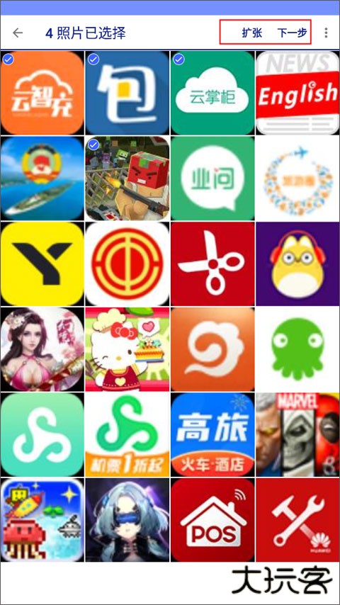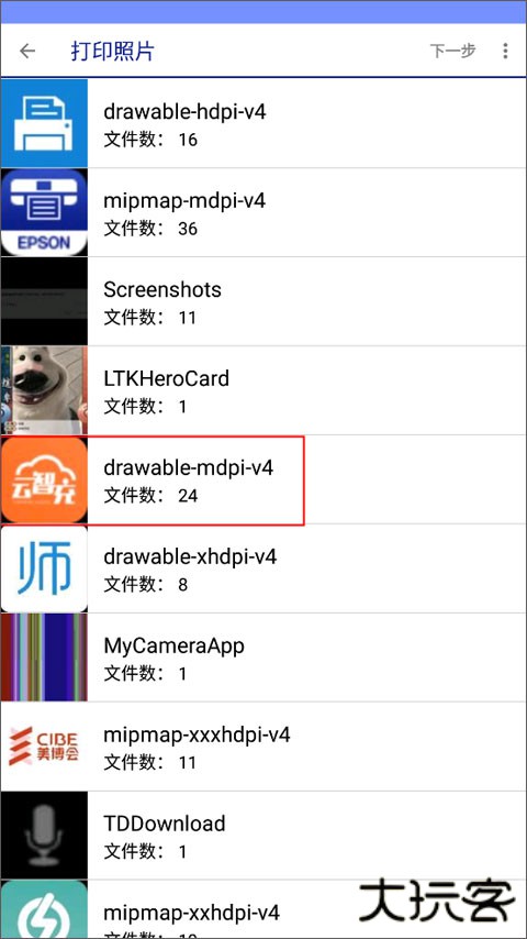 2、进入到本地内存中选择你想要打印的照片,将“选择”按钮切换成扩张,批量选择多张图片,并进入下一步。