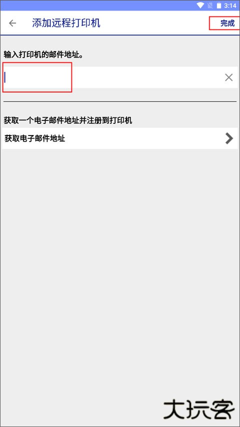 (3)输入打印机的邮件地址并点击完成按钮就可以了。