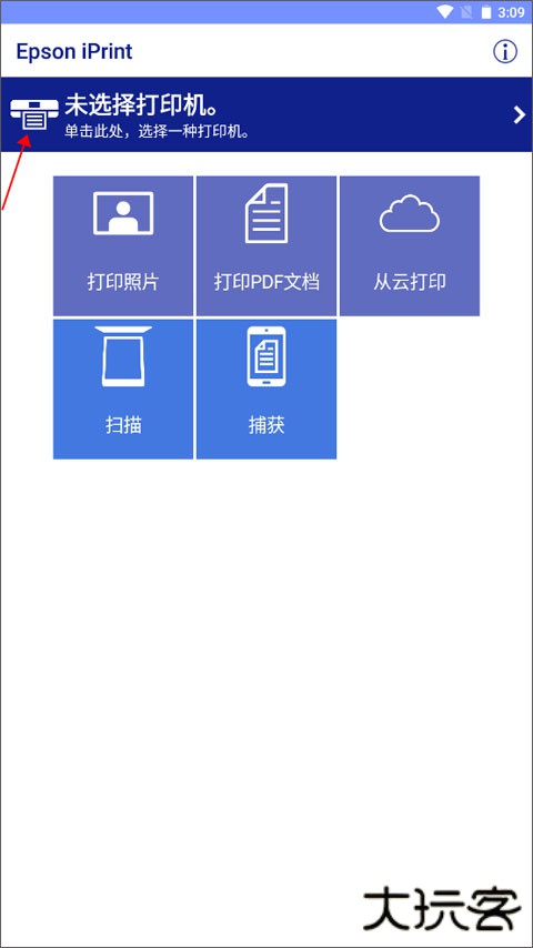 (1)如果使用本地Wi-Fi网络打印,需保证手机与打印机处于同一网络下,然后打开软件,点击上方的“未选择打印机”。