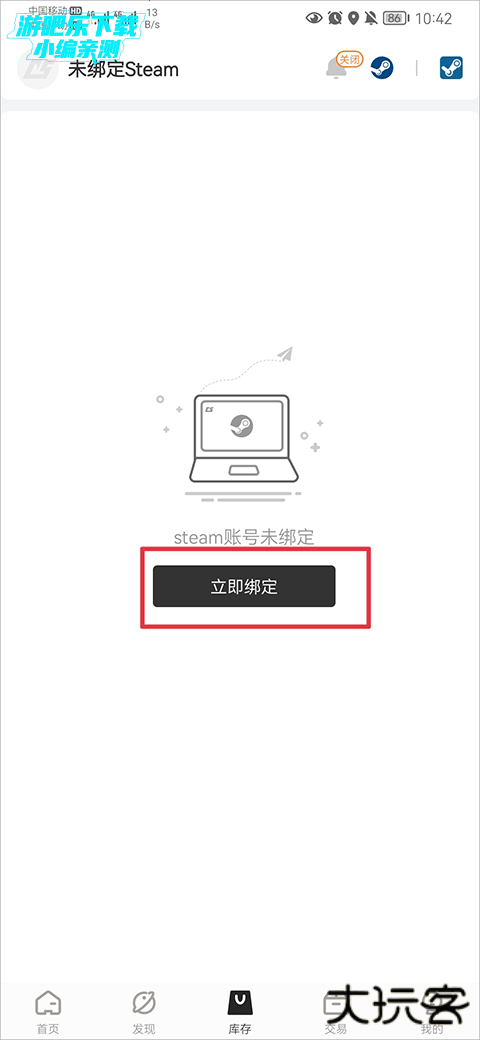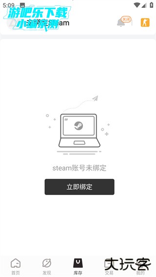 1、打开c5game app后,首先在库存界面中点击立即绑定