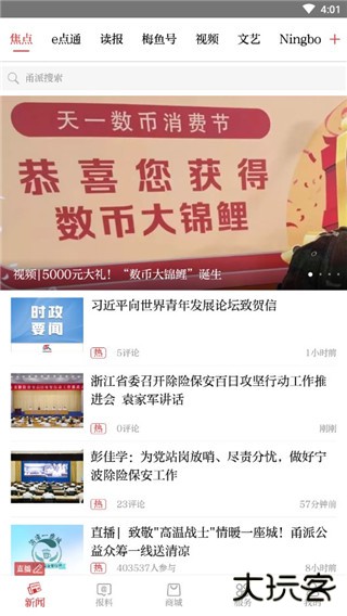 甬派新闻是一款新闻资讯阅读软件,通过软件用户可以查看丰富的资讯内容,涵盖了本地、生活、实政等丰富的种类,用户只需打开软件即可随时随地进行阅读。而且,软件还为用户提供了非常活跃的交流社区,用户可以在这里和其他用户进行友好交流,也可以通过软件结交各种志趣相投的好友。