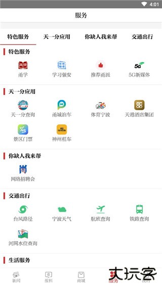 4、而在服务界面有着许多的生活实用类的功能;