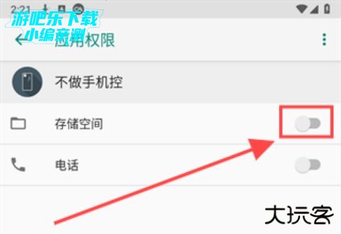 3、进入权限界面,点击储存空间后方的开关,即可完成授权