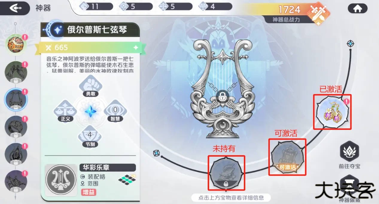获取途径:神器通过宝物激活,宝物可通过神界裂隙玩法,夺宝召唤两种途径获取