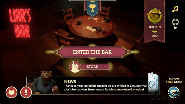 1、打开骗子酒馆手游,点击enter the bar开始;