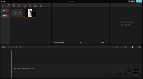 2、点击导入素材功能,选择需要剪辑的视频素材文件。