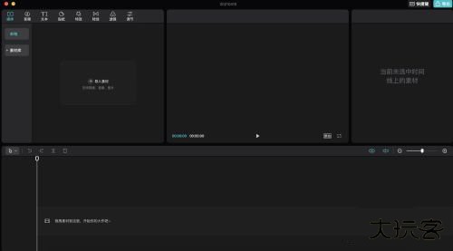 2、导入素材,在软件默认的视频剪辑状态下,点击左上角的导入素材,将电脑中需要进行去水印的视频文件打开。