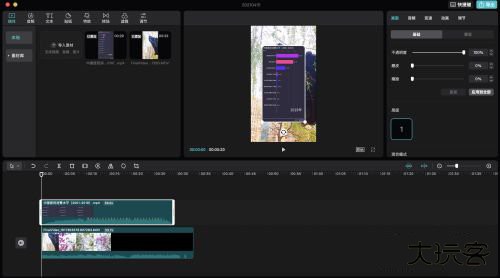 5、将新添加的视频拖拽到编辑轨中即可实现手机版剪映的画中画效果了。