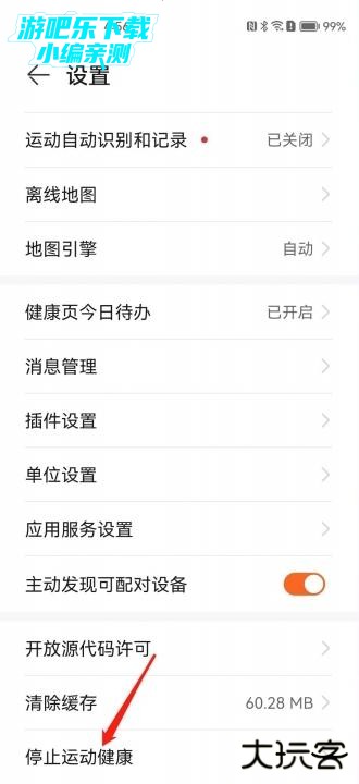 3、 点击“停止运动健康”