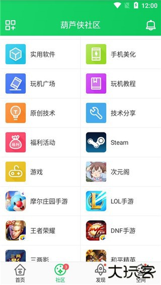 1、首先打开葫芦侠app,进入到首页中后点击右下角的【空间】;
