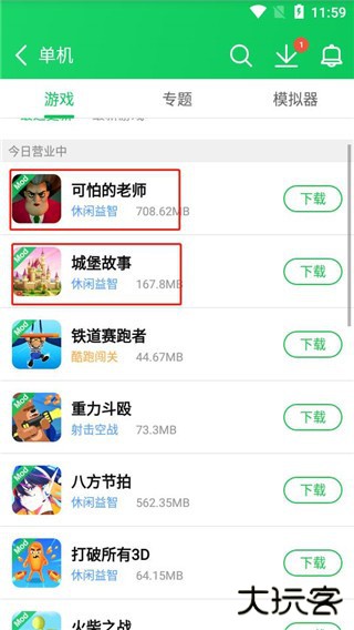 3、点击单机游戏或者网游,你会发现有各种类型的游戏。