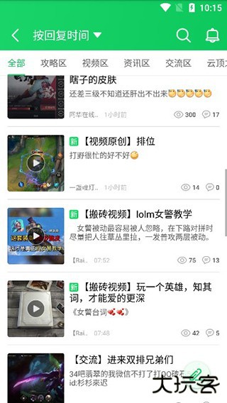 3、在社区版块当中,可以看到众多分区,包括lol手游、原创技术、王者荣耀等等;