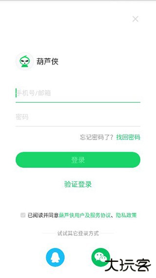 2、然后登录自己的葫芦侠账号,没有的话需要先注册一个;