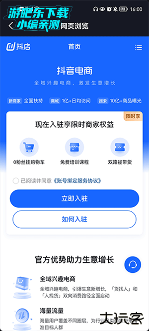 点击立即入驻,即可上架货物并经营自己的抖店。