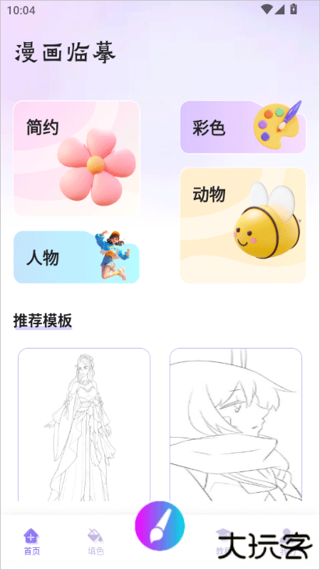 豆画是专为美术爱好者推出的一款低门槛绘画软件,软件拥有超度专业实用的绘画工具,用户可以通过画板自由的进行绘画创作。同时软件还为没有美术基础但是爱好美术的用户提供了填色创作的绘画方式,用户可以自由在卡通、古风、动物、现代等种类中选择自己想要涂色内容即可开始涂色,操作非常简单便捷。