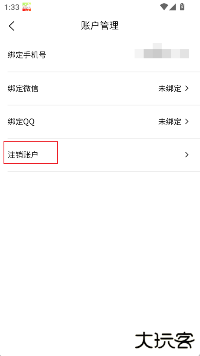 3、点击后进入账号管理界面,找到【注销账户】选项并点击;